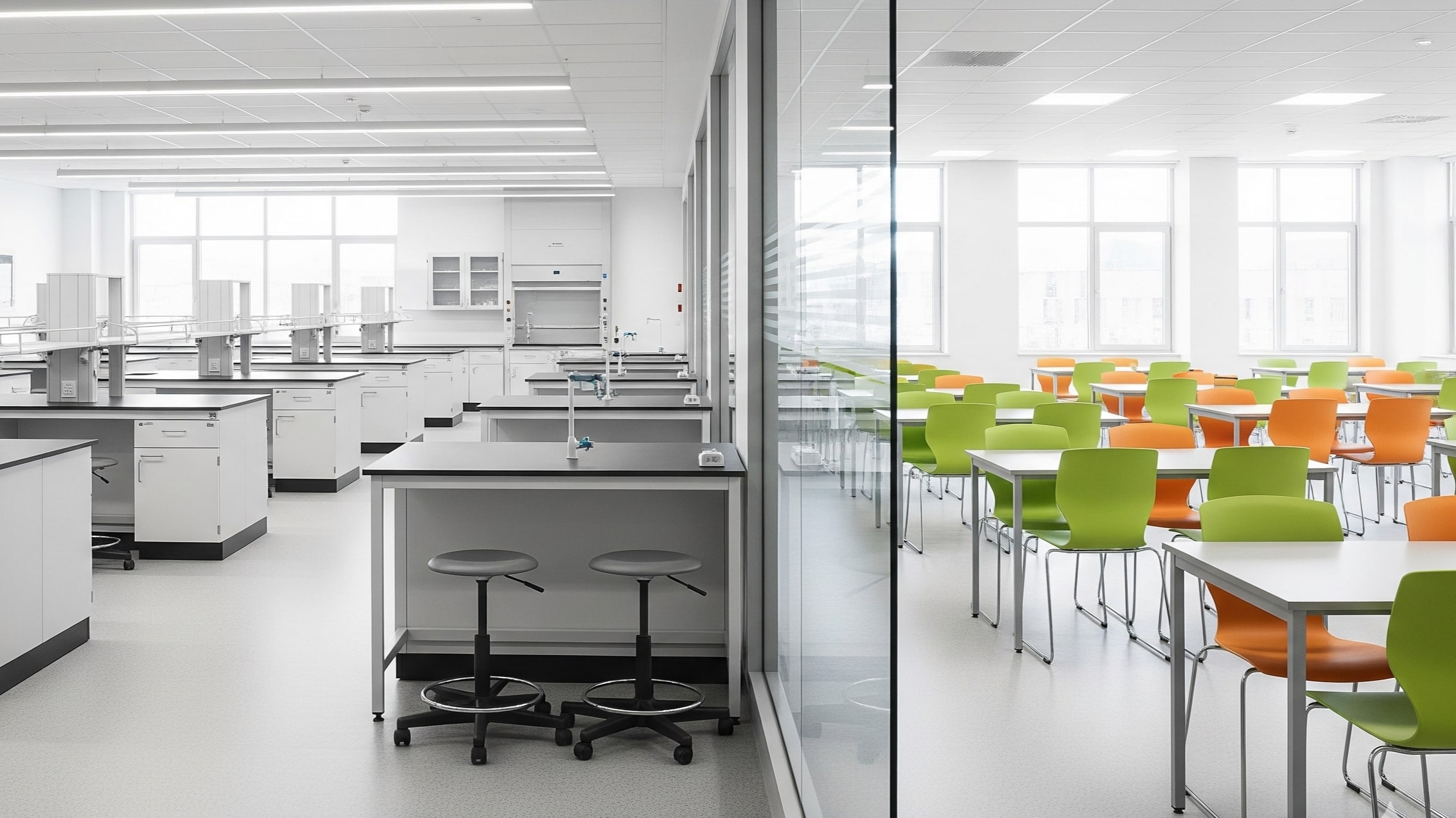 Durable and ergonomic laboratory desks and canteen furniture, designed for safety, comfort, and long-lasting use in schools, colleges, and institutions.