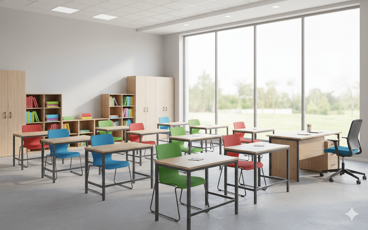 Premium School & Institutional Furniture – Designed for Comfort, Built for Durability. Explore our range of classroom desks, chairs, cabinets, and lab furniture tailored for modern learning spaces.