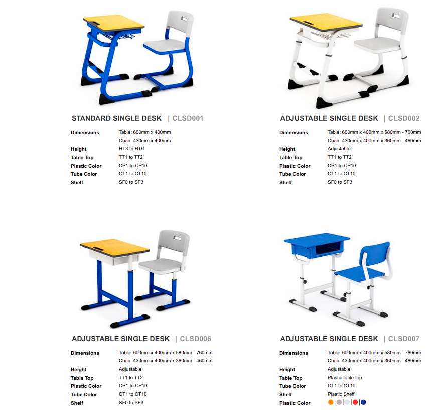 Options | Single Desk, Dual Desk, Fun Shapes & Colors |